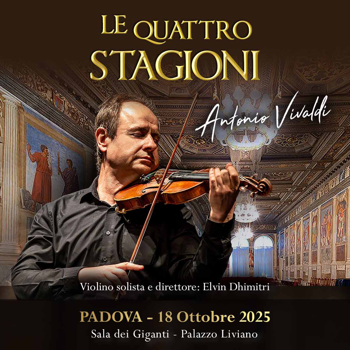 Vivi la potenza evocativa ed emozionante delle "Quattro Stagioni" di Antonio Vivaldi nella splendida sala dei Giganti del Palazzo Liviano di Padova. L’opera più celebre e rivoluzionaria di Vivaldi, l’esempio più alto di musica barocca italiana, eseguita dall`ensemble di Opera e Lirica, con quintetto d’archi e clavicembalo. Violino solista e direttore: Elvin Dhimitri.